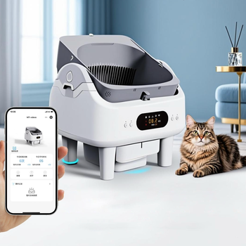 Caja de arena para gatos inteligente de parte superior abierta, limpieza y desodorización automática con control remoto por aplicación, plástico que se adapta a varias camadas